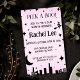 Peek a boo a baby is due! This sleek, modern Halloween baby shower invite is perfect for those looking for a spooky yet classic look to celebrate their Autumn baby! Featuring a witch soaring over the city in a sky full of stars and a full moon, this invitation is sure to satisfy anyone looking to add a little Halloween flair to their invites while keeping it cute and sophisticated. Invites feature a pink gradient background for those looking outside of the typical Halloween colour wheel!