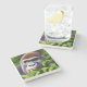 The coasters are gorgeous, a quality feel and heavy weight. They look like a precious archeological find. A rustic stone juxtaposed with a modern floral black and white print. I like the way the print goes slightly imperfect on the cut stone edges giving them a kind-of natural beauty.