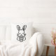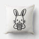 This simple black-and-white line art features a curious bunny holding a steaming cup of coffee. A clean and modern design for anyone who needs their caffeine fix and loves rabbits.