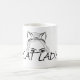 A simple b&w illustration of a woman in playful cat ears peering over the words " Cat Lady".