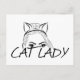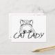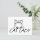 A simple b&w illustration of a woman in playful cat ears peering over the words " Cat Lady".