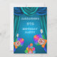 A cool, fun design for boy's 6th birthday. The front of this temp'late has a blue and green coloured stage curtains printed image on a pretty blue background. At the bottom of the card is peeking clowns with rainbow coloured hair and painted faces with giant size bows and big red noses, in the centre at the bottom is a girl clown with a bunch of 7 balloons decorated with spots. The reverse has the same curtain background, your event details and at the bottom are 2 clowns juggling, along side the event details are 4 coloured stars. All text is fully customisable to meet your requirements. If you would like help to customise your product please contact me through my store and i will be very happy to help you.