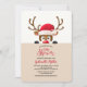 A cute reindeer with Santa's hat invitation featured for a holiday baby shower but suitable for any holiday celebration. (<a href='https://www.freepik.com/free-vector/reindeer-in-santa-hat-peeping-out_1430479.htm'>Designed by Katemangostar</a>). <br/><br/>The card is easy to customise with your wording, font and font colour.<br/><br/>Not exactly what you're looking for? All our products can be custom designed to meet your needs at no extra charge.<br/><br/>Simply contact us at askcottonlamb@gmail.com.<br/><br/>Coordinating products available: Just ask us!