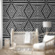 Peel and stick modern black white stripes diamonds wallpaper