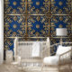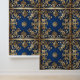 Peel and Stick Wallpaper Indian inspired design Rich Blue Gold Squares Wallpaper. Great easy diy project for renters homeowners interior designers. Create a personalised look for your home condo apartment office or business. Decorate walls celings furniture headboard kitchen backsplash doors or storage containers. The possibilities are endless. Available in textured and smooth vinyl. Sizes 2'x4' 2'x8' 2x10' and 2'x12'.