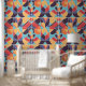 Peel Stick Artdeco Blue Orange Geometric Pattern Wallpaper