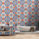 Peel Stick Blue Orange Geometric Tiles Pattern Wallpaper
