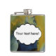 The flask itself is fine. It’s a cheap flask, obviously bought in bulk, however am prepared to overlook that. Given that it is a personalized item, I would have liked to have seen gift boxing instead of the generic packaging. Terrible printing, and/or quality. It’s a cheap, tacky vinyl. It is not cut straight and is also applied in a way that it is overhanging the bottom, causing the glue to catch on items and it will eventually roll and tear, damaging the wrap.