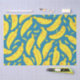 Add a tropical touch to your home decor with this vibrant banana pattern on a blue background. The pattern features illustrated bananas in various stages of peeling, each yellow with brown spots.