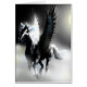 A pegasus flies high above the glowing clouds on a moonlit night free of the cares and worries that may come down on the ground. Behind him the full moon glows brightly and renders the creature mysterious. Is it a white pegasus thrown into deep highlights and shadows or a black horse with dazzling points of white reflection. Or is it, in truth, a dappled animal. In this light we may never know.
