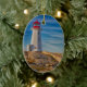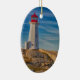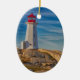 Peggy's Cove Lighthouse on rocky shores of Nova Scotia, Canada against blue skies on sunny day.