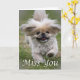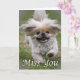 Excited Pekingese running with fur flying and the text," Miss You " a greeting card for someone you miss and someone who loves the Pekingese dog breed. Cute, Adorable card by Friskybizpet Designs.