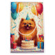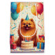 A cheerful birthday scene featuring a Pekingese enjoying a festive celebration surrounded by colourful balloons, presents, and a bright birthday cake. The fluffy mane and playful party details create a joyful design full of charm and warmth..