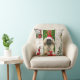 Pekingese Dog Christmas sitting outside decorated home with Christmas wreath, Christmas tree is a perfect Christmas gift idea for dog lovers.