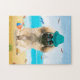 A Pekingese dog sitting on beach is a perfect gift idea for someone who love this dog breed.