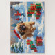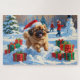 Pekingese Dog Running in Snow with Christmas Hat Jigsaw Puzzle