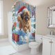 Pekingese Dog Running in Snow with Christmas Hat Shower Curtain