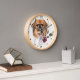 A portrait of an adorable reddish brown Pekingese dog is just behind a pretty winter floral bouquet on this clock. Behind the image is a swirl of faux gold glitter. Dark gold numbers and diamond shaped markers around the perimeter make the clock easy to read. Perfect for anyone who has lost their heart to a little Pekingese.