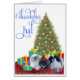 Several designs wishing you a Merry Christmas in the English language and in the Danish language. Featuring the darling black Pekingese puppy with his Santa Hat and his little boots. Created from my original artwork, come visit our Shop and see this design on greeting cards, clothing, novelty and gift items!!