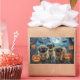 Unleash the spooky spirit with this eerie Halloween design featuring a pack of dogs under a dark, moonlit sky, surrounded by flying bats and glowing pumpkins. Perfect for those who love a touch of frightful fun with their furry friends!