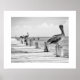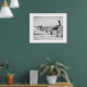 Poster is shown with a black and white photo print of a rustic dock with pelicans.