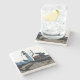 The coasters are gorgeous, a quality feel and heavy weight. They look like a precious archeological find. A rustic stone juxtaposed with a modern floral black and white print. I like the way the print goes slightly imperfect on the cut stone edges giving them a kind-of natural beauty.