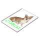 This fun notebook features a happy tan and white Pembroke Welsh Corgi puppy dog highlighted against creamy white background with Corgi printed in a cute lime green heart font.