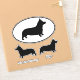 Oval and die cut sticker set. These durable dog silhouette decals are waterproof and scratch resistant. Stick these Pembroke Welsh Corgi stickers to your laptop, phone, notebook, water bottle, helmet, luggage, or even your car. Visit Jenn’s Doodle World for even more dog breed vinyl decals and Corgi lover’s gifts.