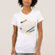 This design showcases the old fashioned writing instruments of pencil and paper. The design has a notepad and then a pencil, a crayon, an eraser and a glue stick. This pencil and paper design looks great on this womens t-shirt. Perfect for yourself or as a gift