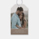 Pencil Us In Save The Date Photo Wedding Gift Tags features the text "Pencil Us In" in modern white calligraphy script with your custom Save The Date information below on a kraft paper background. On the reverse add your favourite photo and wedding website. Personalise by editing the text in the text box provided. Coordinates with the "Pencil Us In" pencils at Evco Studio www.zazzle.com/store/evcostudio