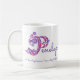 Hand drawn letter P name and meaning mug. Pretty heart and flower capital P doodled typographic design featuring hearts and flowers and the words Penelope A clever loyal weaver. Unravelling truth with love. © Unique art and design by Sarah Trett. www.sarahtrett.com for www.mylittleeden.com on zazzle