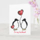 The card has a penguin couple with a heart balloon and reads, "To my husband.. Happy Anniversary".