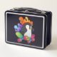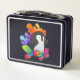 This is a standard metal lunchbox that appears to work just fine. We designed this box ourselves with an uploaded photo and custom text on the front and back. It looks absolutely beautiful except the front of the lunchbox is not centered like it shows in the photo. The print borders don't align with the inset flat part of the box where the preview photo online showed it perfectly centered in there. The back looks nice and centered though.