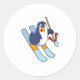 Penguin as Skier with Ski Classic Round Sticker