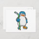 Penguin at Ice hockey with Ice hockey stick Postcard