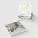 The coasters are gorgeous, a quality feel and heavy weight. They look like a precious archeological find. A rustic stone juxtaposed with a modern floral black and white print. I like the way the print goes slightly imperfect on the cut stone edges giving them a kind-of natural beauty.