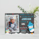 Waddle on over for some fun with this winter Penguin theme invitation featuring cute little Penguin and some snowflakes around.