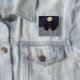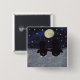 A scanned painting of two adorable penguins holding hands on a snowy night under a full moon on a pin button