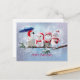 Penguin, cat, owl and snowman under the snow announcement postcard