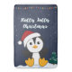 The penguin on Soft Nights as a greeting card. Funny animals with gifts and snow for the holidays. Also funny for christmas in July. Penguins are cute animals and perfect for Christmas.