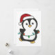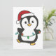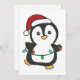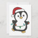 The Penguin at Christmas with fairy lights. Funny animals with gifts and snow for the holidays. A sweet Christmas greeting. Penguines are cute animals and perfect for Christmas.