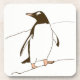 A lovely simple line drawing of a Gentoo Penguin. The penguin is black and white with an orange bill and feet.