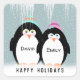 Cute penguin couple with icicles and personalised names in snowflake.