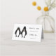 Wedding place setting card penguin design. Customise this wedding place setting card with your wedding details. Should you require any help with customising then please contact us through the link on this page. Penguin design personalised wedding place setting card