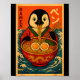 Penguin Eating Ramen Japanese Noodles Funny Poster