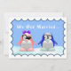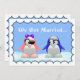 Cute boy and girl cartoon penguins announcing your marriage and party invitation.