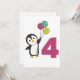 The penguin with balloons for the fourth birthday. For every child who turns four years old. Cute penguins for children's 4th birthday.