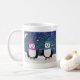 Take a coffee break with a few penguin friends anytime! Graphic illustration of penguin friends sharing some hot cocoa on a cold winter day.