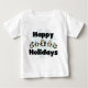 Christmas T-shirts, mugs, cards, stickers, tote bags, magnets, and other Christmas holiday clothing and gift items featuring five adorable penguins and text that reads Happy Holidays.