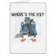 A penguin dressed in a blue coat, hat, and scarf carries her ice skates and asks "Where's The Ice?". This cute penguin ice skater design on T-shirts, cards, mugs, tote bags, and other items is perfect for figure skaters!